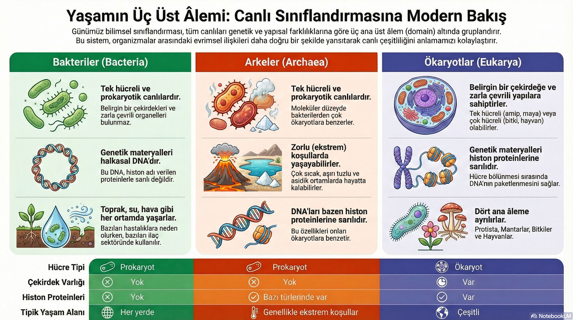 Canlılar, günümüz sistematikçileri tarafından üç üst âlem (üçlü domain sistemi) içerisinde gruplandırılmaktadır. Bu sistemde canlılar aşağıdaki gibi üç gruba ayrılmaktadır.